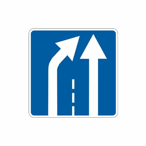 Знак 5.8.6 «Конец полосы» обозначает конец полосы, предназначенной для движения в данном направлении.